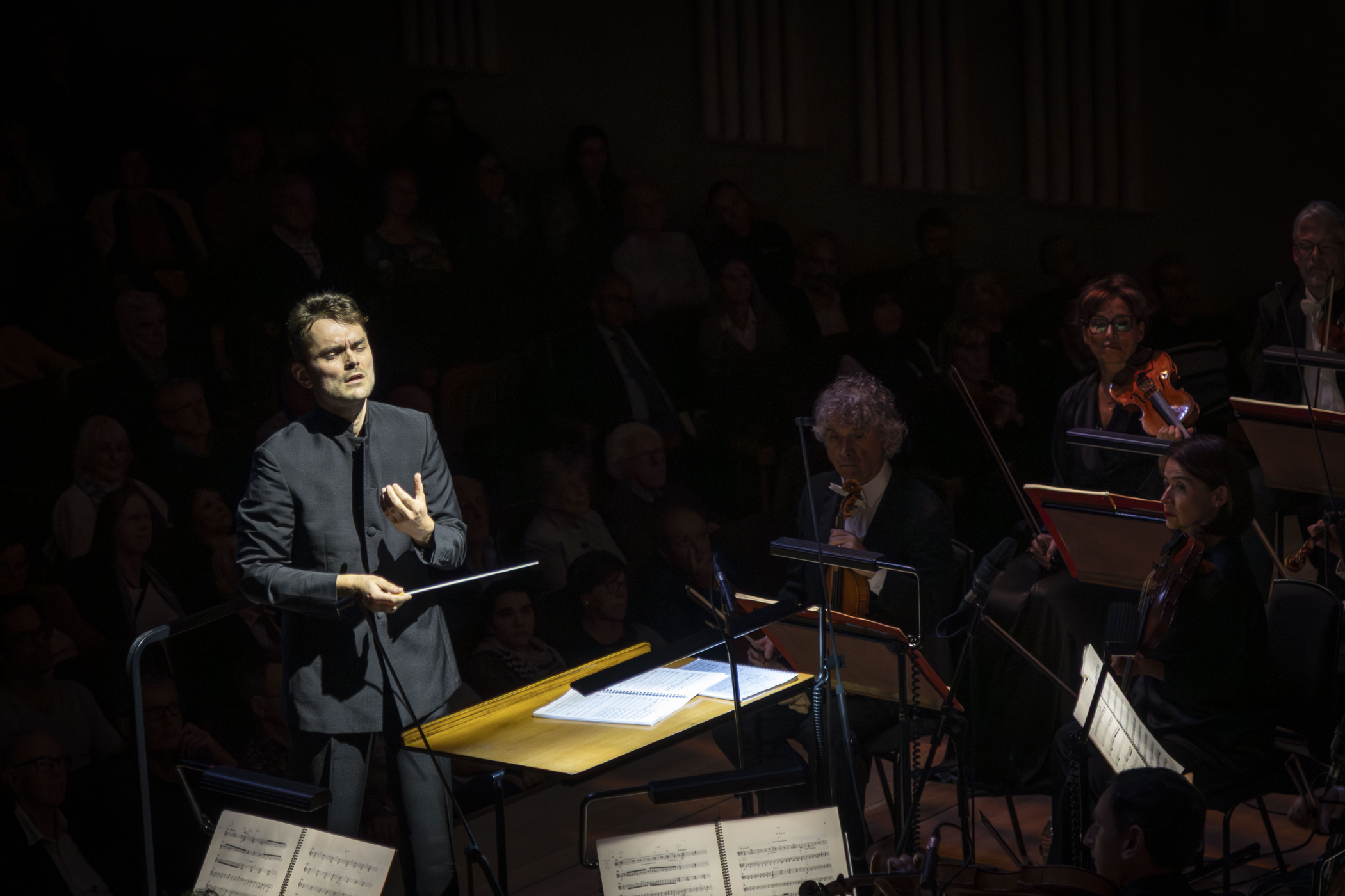 Jakob Lehmann conducts with broad, expressive gestures. The conductor could be a romantic hero! He becomes one with the music, offering us almost a choreography.